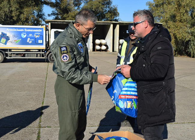 Κάδοι ανακύκλωσης τοποθετήθηκαν και στην Διασπορά της 117 ΠΜ, όπου διαμένουν 160 οικογένειες στελεχών της Πολεμικής Αεροπορίας. Παράλληλα, μοιράστηκαν και τσάντες ανακύκλωσης.