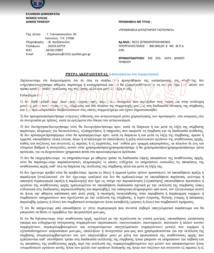 ΑΛΛΗ ΜΙΑ ΔΕΣΜΕΥΣΗ ΤΟΥ ΔΗΜΑΡΧΟΥ ΠΗΝΕΙΟΥ ΓΙΝΕΤΑΙ ΠΡΑΞΗ