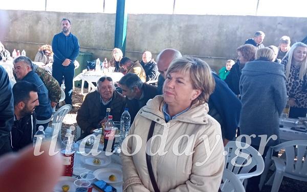 Σε έναν χώρο, που διαμόρφωσε ο αντιδήμαρχος καθαριότητας Νίκος Μαφρέδας, παρουσία του Μητροπολίτη Ηλείας κ.κ. Αθανασίου και του Δημάρχου Πηνειού Ανδρέα Μαρίνου, οι εργαζόμενοι του δήμου παρευρέθηκαν και συνέχισαν, μετά τον αγισμό και την κοπή πίτας, να διασκεδάζουν υπό τους ήχους μουσικής.