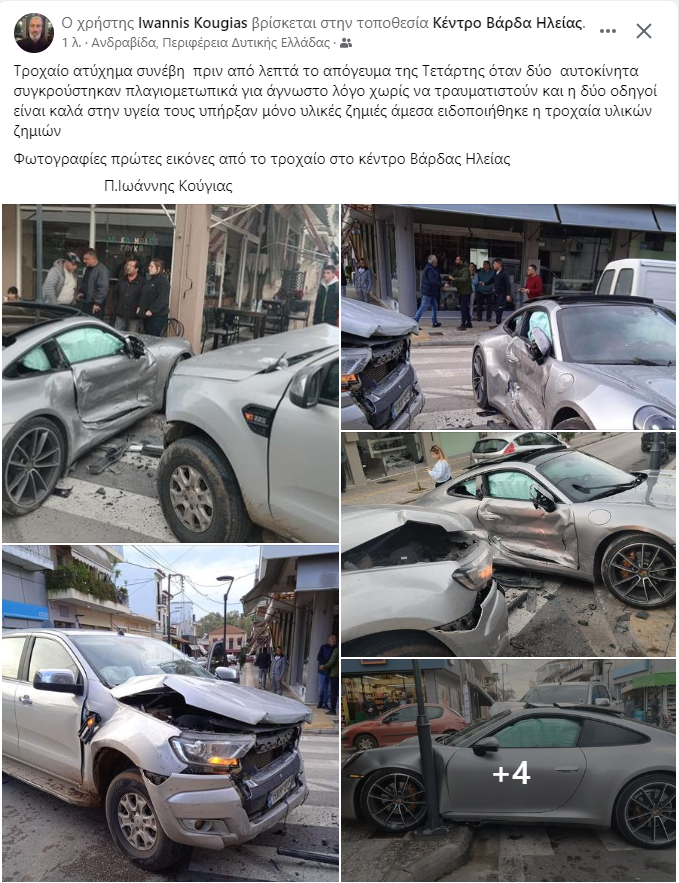 Τροχαίο ατύχημα συνέβη πριν από λίγα λεπτά στην Βάρδα όταν δύο αυτοκίνητα συγκρούστηκαν πλαγιομετωπικά. Από την σύγκρουση δεν τραυματίστηκε κανείς.
