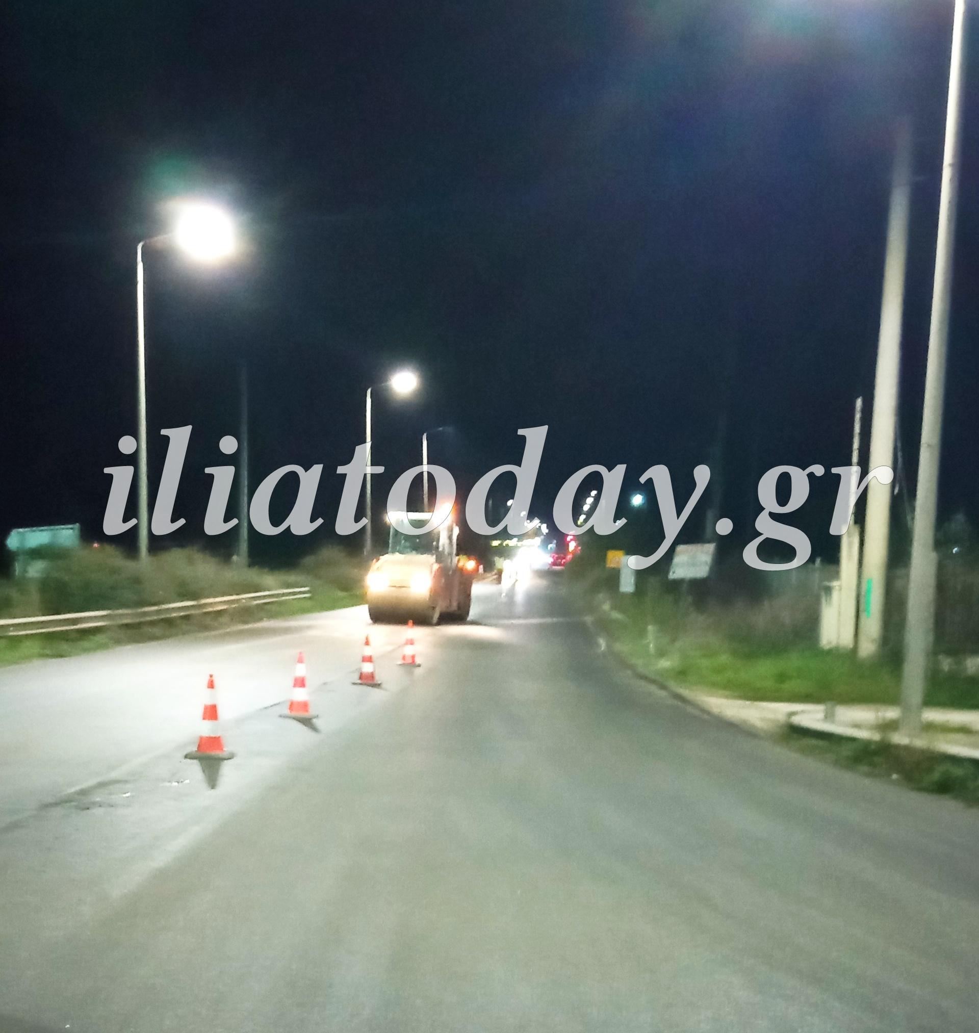 Εργασίες αποκατάστασης του οδοστρώματος από την διασταύρηση της Ε.Ο. Πατρών-Πύργου με την Κυλλήνη και μέχρι την διασταύρωση των Λεχαινών, έγινε από συνεργείο χθες τη νύχτα.
