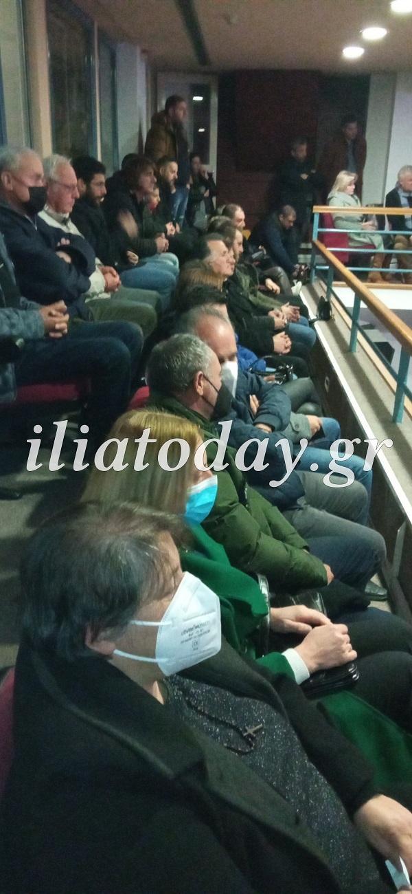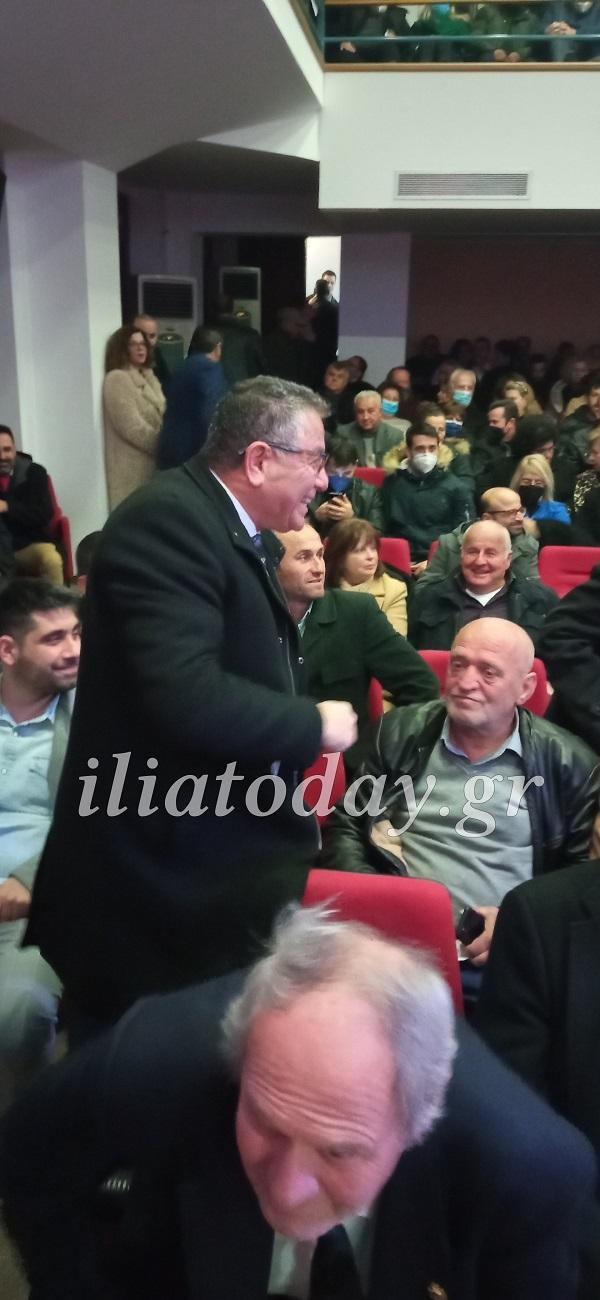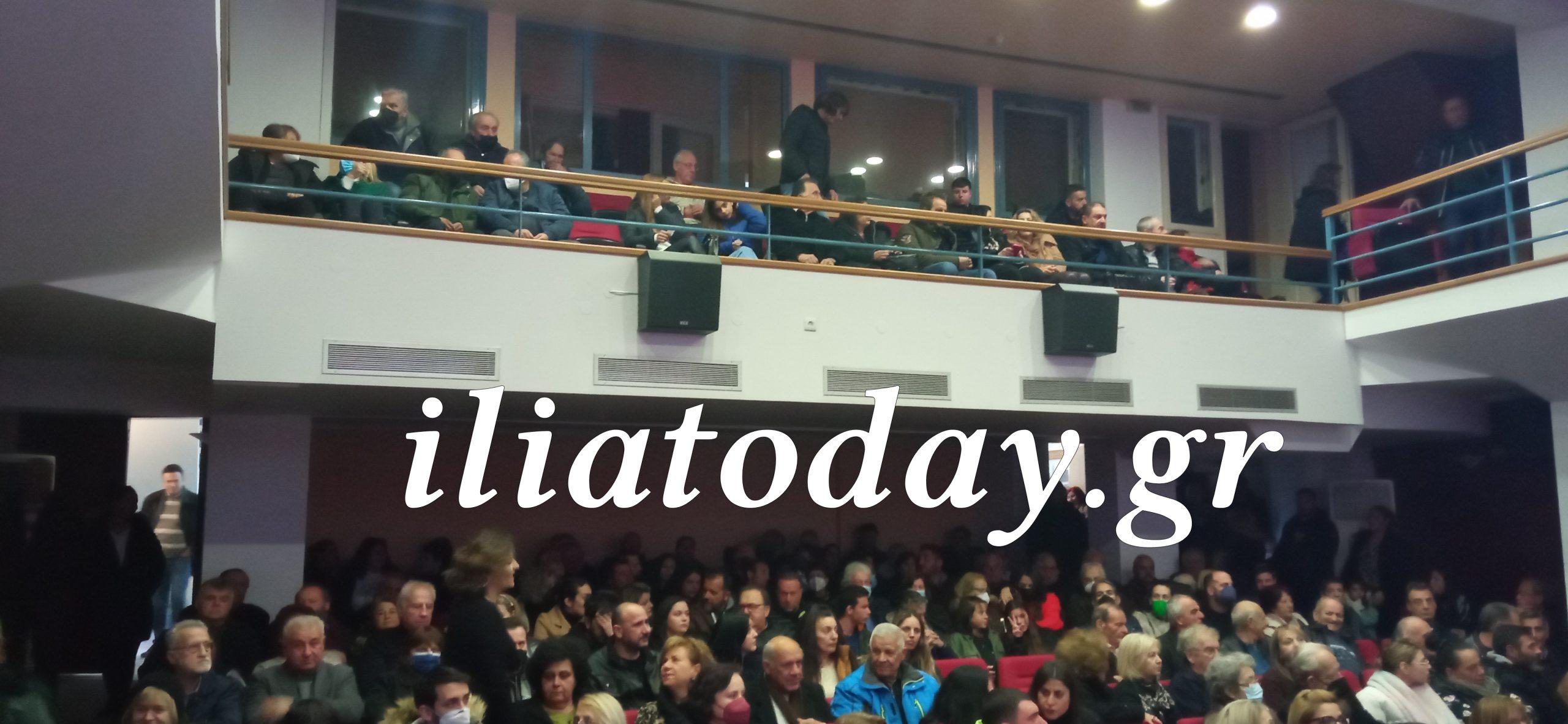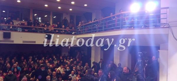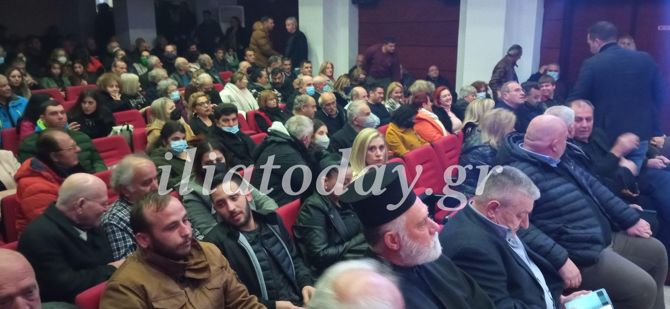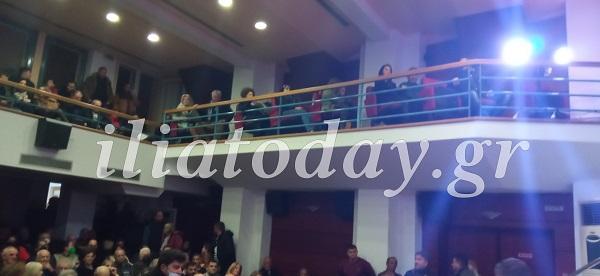 Σε μία κατάμεστη, μέσα κι έξω, αίθουσα του Κουρβισιάνειου στην Γαστούνη, πραγματοποιήθηκε απόψε η κοπή της πρωτοχρονιάτικης πίτας της δημοτικής παράταξης “Κοινωνία των Πολιτών”, μ’ έναν δήμαρχο, ο οποίος στην ομιλία του καταχειροκροτήθηκε από όλο τον κόσμο.