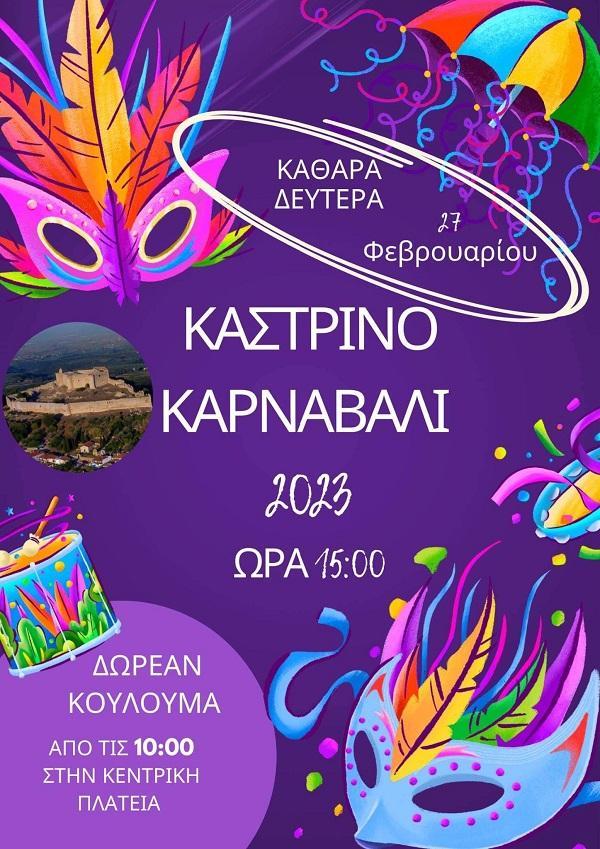 Οι καρναβαλικές εκδηλώσεις στον Δήμο κλείνουν την Καθαρά Δευτέρα, 27 Φεβρουαρίου με το παραδοσιακό Καστρινό Καρναβάλι, στο Κάστρο. Με εκδηλώσεις για τα Κούλουμα από τις 10:00 το πρωί στην κεντρική πλατεία και την μεγάλη καρναβαλική παρέλαση να ξεκινά στις 15:00 το μεσημέρι!