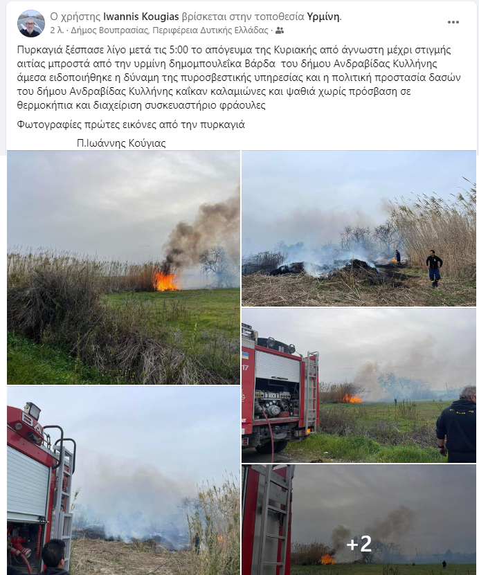 Φωτιά ξέσπασε το απόγευμα της Κυριακής 26 Φεβρουαρίου στην περιοχή Υρμίνη Δημομπουλέικα της Βάρδας.