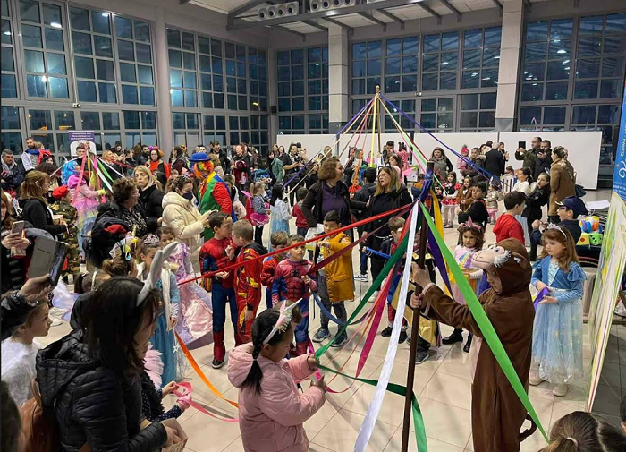 Επί τρεις ώρες παιδιά όλων των ηλικιών ψυχαγωγήθηκαν με ιστορίες γέλιου και συγκίνησης με τις μασκότ Winnie Pooh-Mickey Mouse-Sylvester-Tweety, τη Sara και τον κλόουν Παπατάκη. Και φυσικά στο τέλος φωτογραφήθηκαν μαζί τους. Χόρεψαν αποκριάτικους χορούς και γαϊτανάκι, έκαναν μπαλονοκατασκευές, έπαιξαν πρωτότυπα ομαδικά παιχνίδια και μασκαρεύτηκαν με face & hand painting.