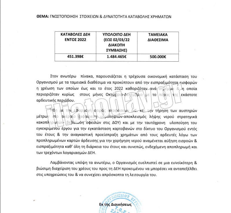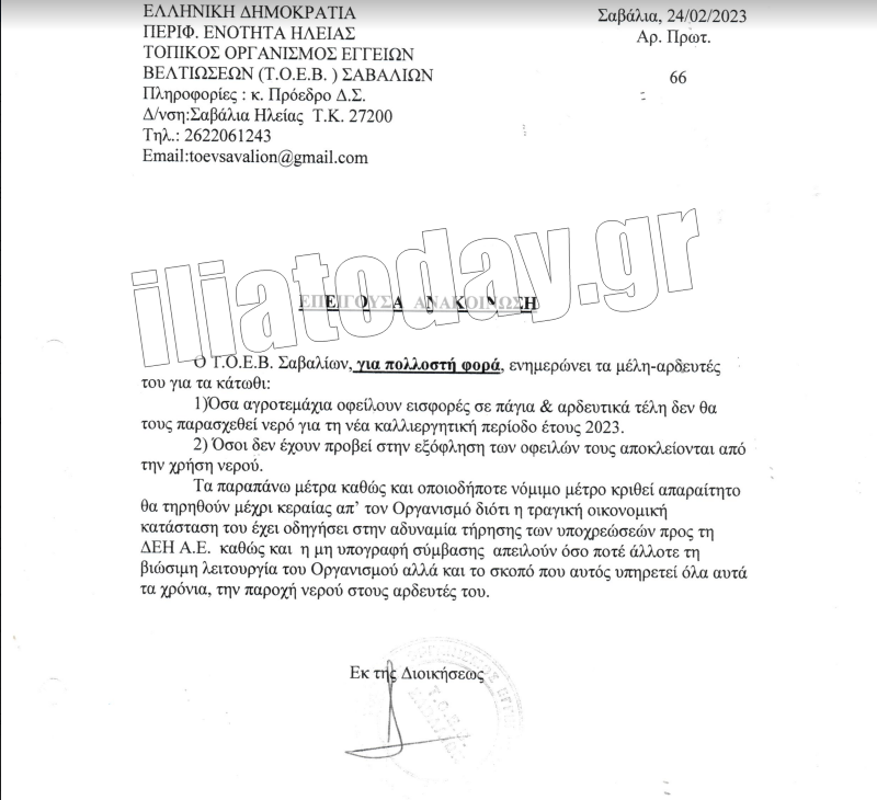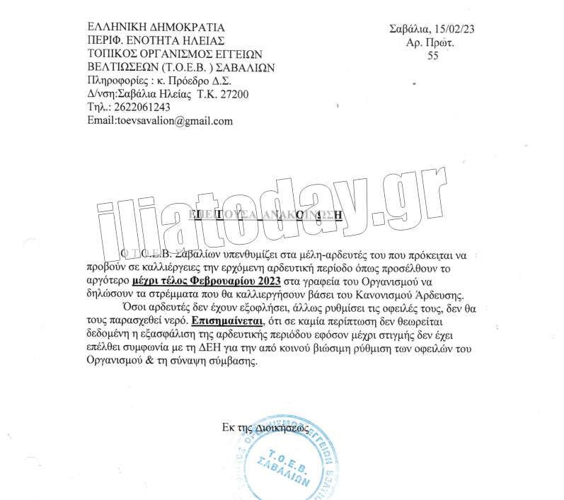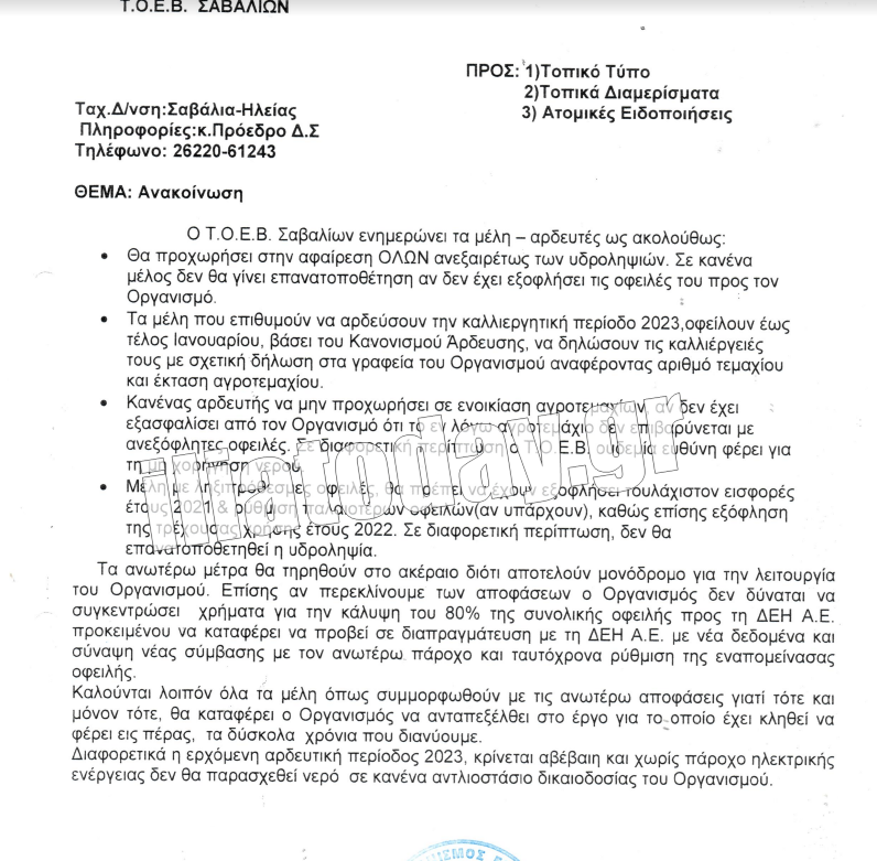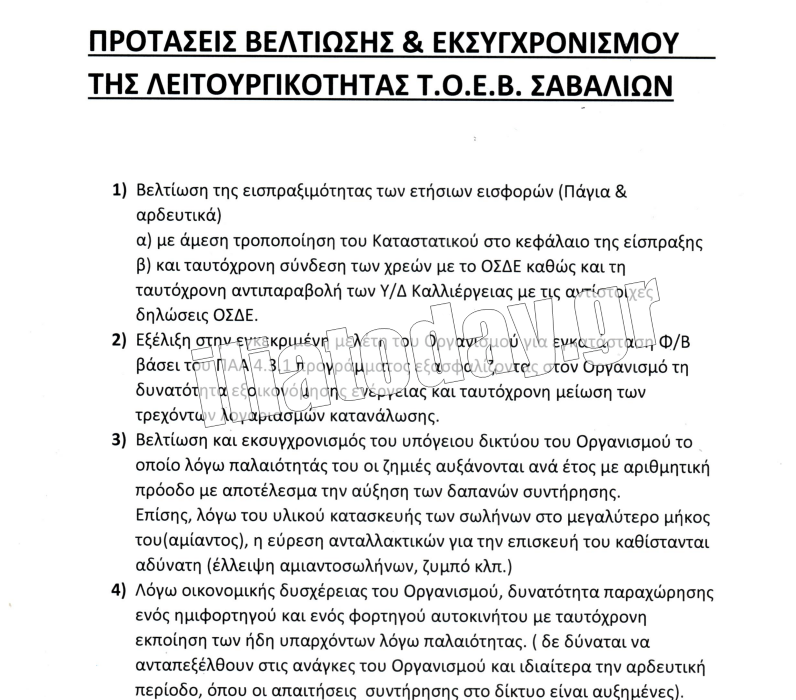 Δείτε τα έγγραφα του ΤΟΕΒ Σαβαλίων: