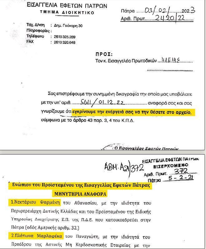 Στις αρχές Φεβρουαρίου 2021 Φαρμάκης και Μαρλαφέκας συνοδευόμενοι από υπηρεσιακούς παράγοντες της Περιφέρειας Δυτικής Ελλάδας (ΠΔΕ) και τοπικά ΜΜΕ κατέθεσαν μηνυτήρια αναφορά σε βάρος του δημοσιογράφου στο Documento Μ. Νοδάρου και του Ηλείου δημοσιογράφου-ιδιοκτήτη ενημερωτικών ιστοσελίδων Κώστα Κουτσουβέλη. Το «έγκλημα» ήταν ότι εξέφρασαν δημόσια μέσα από το ρεπορτάζ πολλά και αναπάντητα ερωτήματα των επαγγελματιών και του εμπορικού κόσμου της περιοχής που αφορούσαν τον τρόπο με τον οποίο δόθηκαν τα 30 εκατ. ευρώ της δράσης «Στήριξη επιχειρήσεων που επλήγησαν από την Covid-19 στη δυτική Ελλάδα» στο πλαίσιο του επιχειρησιακού προγράμματος «Δυτική Ελλάδα 2014-2020».