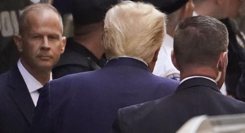 Ο Ντόναλντ Τραμπ βγήκε από τον πύργο Trump στο Μανχάταν στις 13:11 τοπική ώρα και 14 λεπτά μετά πέρασε την πόρτα του δικαστηρίου στη νότια πλευρά της ίδια περιοχής.