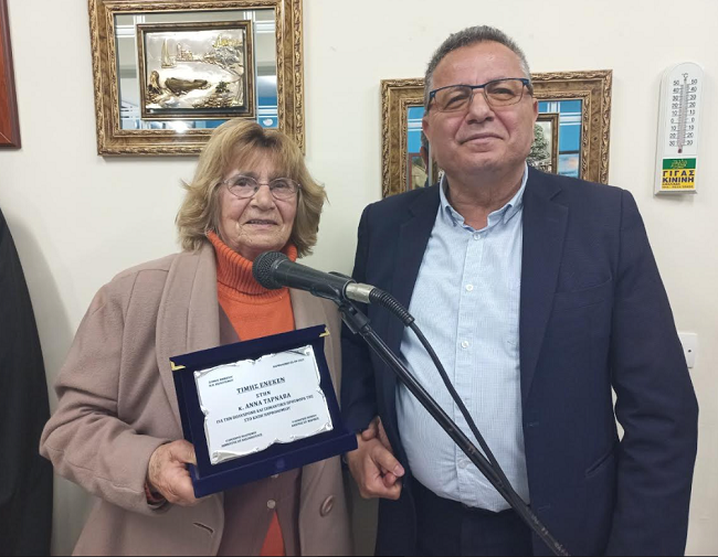 «Είμαι πεπεισμένος ότι η κ .Κωνσταντίνα Αχτύπη και οι συνεργάτες της θα αναπληρώσουν με επιτυχία το τεράστιο κενό που αφήνει η κ. Χαρίκλεια Πολυδωροπούλου η οποία θα συνεχίσει να είναι δίπλα μας, θα συνεχίζει να προσφέρει στην Λέσχη Φιλίας. Η τιμητική πλακέτα που σας απονέμω έχει συμβολική σημασία αλλά περικλείει την ουσία της ευγνωμοσύνης», δήλωσε μεταξύ άλλων ο Δήμαρχος κ. Αν. Μαρίνος στο σύντομο χαιρετισμό του.