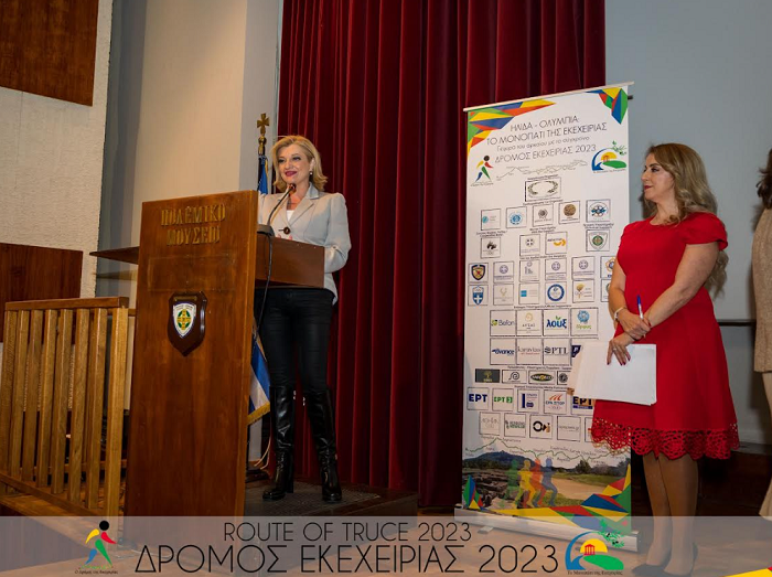 Στα εγκαίνια της εικαστικής έκθεσης με τίτλο: «Μέγα το της θαλάσσης κράτος», η οποία διοργανώθηκε από την Συμπολιτεία Ολυμπίας και την Οργανωτική Επιτροπή του «Δρόμου Εκεχειρίας 2023», παρευρέθηκε η Βουλευτής Ν. Ηλείας, Ν.Δ., Δρ. Διονυσία – Θεοδώρα Αυγερινοπούλου. Η εκδήλωση πραγματοποιήθηκε στο πλαίσιο της διοργάνωσης του 8 ου Δρόμου Εκεχειρίας που θα λάβει χώρα στις 7 Μαΐου από την Αρχαία Ήλιδα έως την Αρχαία Ολυμπίας, τιμώντας την Παγκόσμια Ημέρα Αθλητισμού για την Ανάπτυξη και την Ειρήνη.