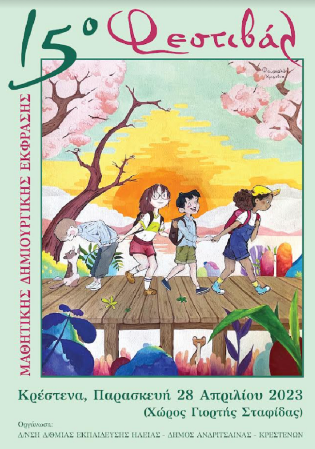 Ξεχωριστό γεγονός για την περιοχή του δήμου Ανδρίτσαινας-Κρεστένων αλλά και ολόκληρη την Ηλεία, αποτελεί η διεξαγωγή του 15 ου Φεστιβάλ Μαθητικής Δημιουργικής Έκφρασης, που θα γίνει μετά από τρία χρόνια -λόγω του covid- την Παρασκευή 28 Απριλίου στο χώρο της Γιορτής Σταφίδας Κρεστένων. Συνδιοργανωτές του Φεστιβάλ Μαθητικής Δημιουργικής Έκφρασης είναι η Διεύθυνση Δευτεροβάθμιας Εκπαίδευσης Ηλείας και ο δήμο Ανδρίτσαινας- Κρεστένων.