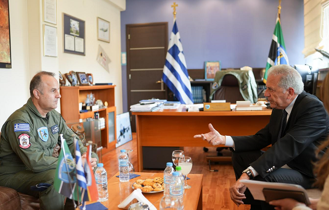 Ενημερώθηκε από τον Διοικητή, Σμήναρχο Αβραάμ Καζαντζόγλου, για τις τρέχουσες δραστηριότητες και το επιχειρησιακό έργο της Πτέρυγας Μάχης, ενώ περιηγήθηκε στις εγκαταστάσεις τους, συνομίλησε με τα στελέχη και το πολιτικό προσωπικό Λίγο πριν την αναχώρηση δέχτηκε αναμνηστικά δώρα από τον Διοικητή με την επιπλέον αναφορά ανανέωσης της συνάντησης σε σύντομο χρονικό διάστημα.
