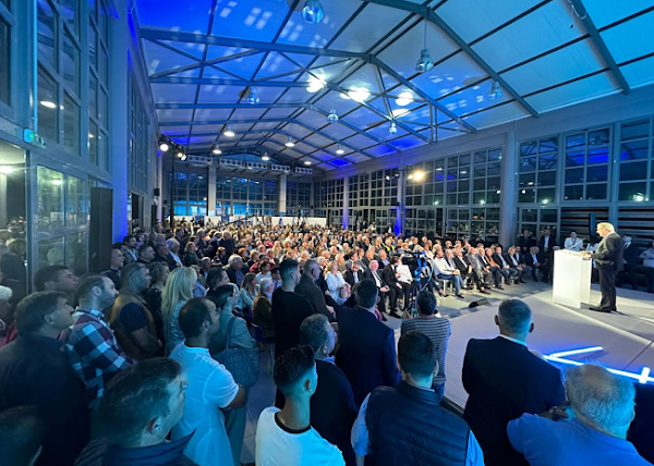 Η αίθουσα βούλιαξε από ψηφοφόρους από όλες τις ηλικιακές ομάδες, οι οποίοι διέκοπταν διαρκώς τον υποψήφιο βουλευτή με χειροκροτήματα και συνθήματα νίκης.