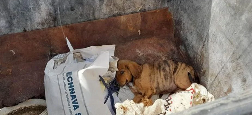 Το κουτάβι τελικά σώθηκε καθώς το έβγαλαν από τον κάδο και έχει ανοίξει ο δρόμος για την υιοθεσία του από κάποιον πιο φιλόζωο ιδιοκτήτη.