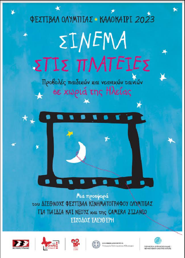 Το Διεθνές Φεστιβάλ Κινηματογράφου Ολυμπίας για Παιδιά και Νέους διοργανώνει το φετινό καλοκαίρι, για 10 η συνεχή χρονιά, το πρόγραμμα ΣΙΝΕΜΑ ΣΤΙΣ ΠΛΑΤΕΙΕΣ με προβολές επιλεγμένων ταινιών σε χωριά του νομού Ηλείας. Με το πρόγραμμα αυτό το Φεστιβάλ Ολυμπίας προσφέρει τη δυνατότητα στα παιδιά απομακρυσμένων περιοχών και στις οικογένειές τους να παρακολουθήσουν ΔΩΡΕΑΝ στη μεγάλη οθόνη ποιοτικές ταινίες από τον σύγχρονο ευρωπαϊκό κινηματογράφο, ενώ ταυτόχρονα αποτίει φόρο τιμής στους πλανόδιους κινηματογραφιστές των περασμένων εποχών που μέχρι και τη δεκαετία του 1970 περιόδευαν τα καλοκαίρια στην ελληνική επαρχία, ψυχαγωγώντας τους κατοίκους της με ταινίες από τον ελληνικό κινηματογράφο.