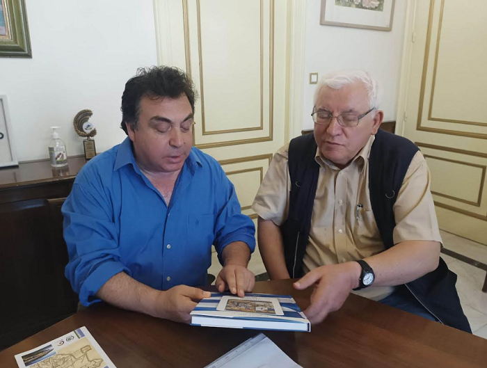 Ο δήμαρχος πρόσφερε ως αναμνηστικό στον κ. Τριγάζη τις ιστορικές εκδόσεις του Δήμου Πύργου για το ρόλο της Ηλείας στην Ελληνική Επανάσταση του 1821 και για την Αρχαία Φειά.