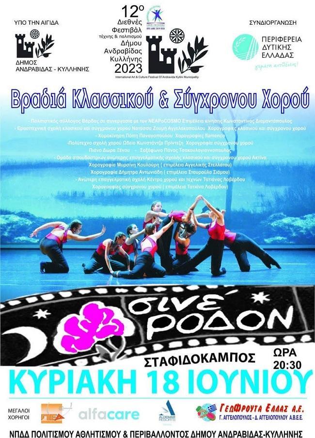 Το 12ο Φεστιβάλ Ανδραβίδας-Κυλλήνης ανοίγει τις πύλες του την Κυριακή 18 Ιουνίου 2023 με μία ξεχωριστή μουσικοχορευτική παράσταση αφιερωμένη στην Ευρωπαϊκή Ημέρα Μουσικής, που θα πραγματοποιηθεί στο Σινέ Ρόδον στον Σταφιδόκαμπο στις 20:30. Με όχημα την ενωτική δύναμη της μουσικής και του χορού, έξι ομάδες καλλιτεχνών ανεβαίνουν στην σκηνή και φιλοδοξούν σε ένα υψηλής αισθητικής θέαμα υπό τους ήχους κλασσικών και σύγχρονων συνθετών.