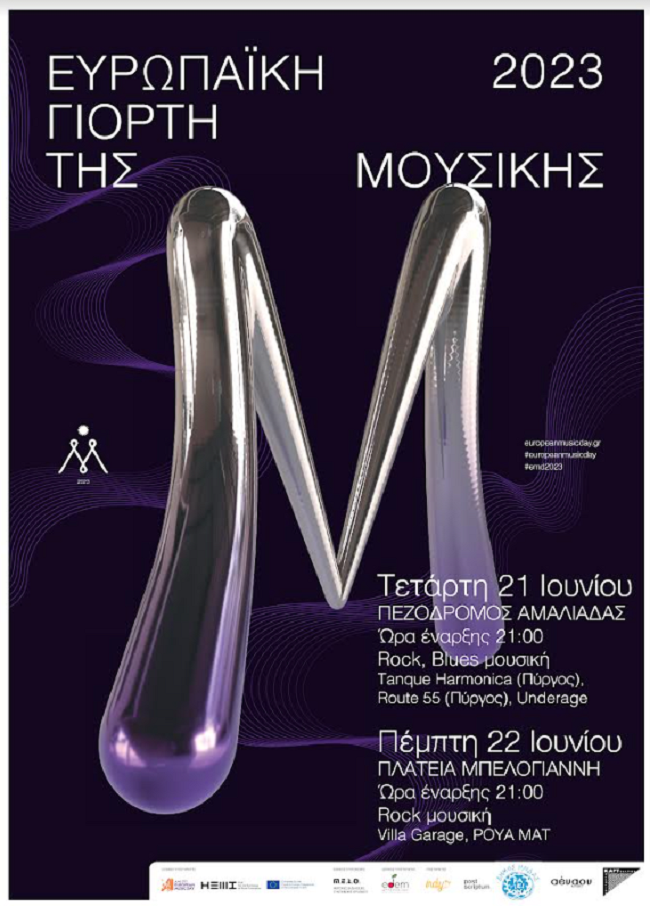 Η Αμαλιάδα πρωταγωνιστεί και πάλι στην Ευρωπαϊκή Γιορτή της Μουσικής 21 και 22 Ιουνίου2023 σε Πεζόδρομο και Πλατεία Μπελογιάννη