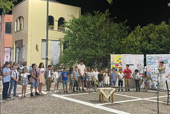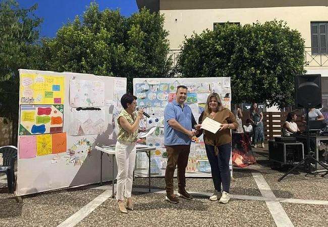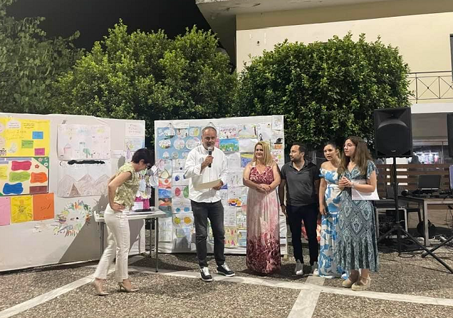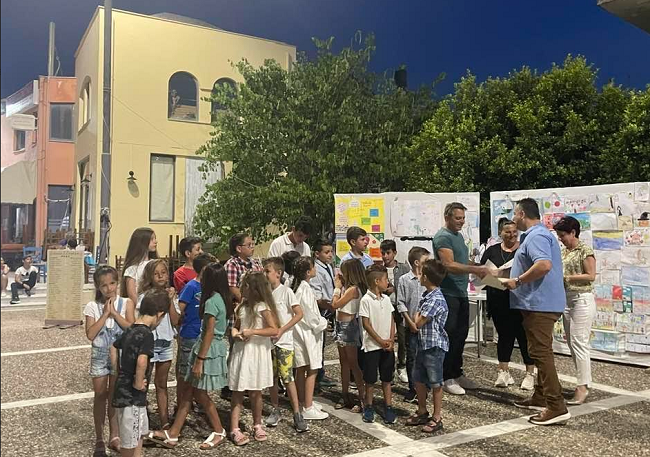 Ενδιάμεσα, ο Δήμαρχος, Αντιδήμαρχοι, ο Πρόεδρος του ΔΣ και ο Πρόεδρος της Κοινωφελούς απένειμαν τους επαίνους στα σχολεία, συγχαίροντας εκπαιδευτικούς και μαθητές. Στα πέριξ της πλατείας ήταν τοποθετημένες ζωγραφιές και άλλες δημιουργίες των μαθητών.