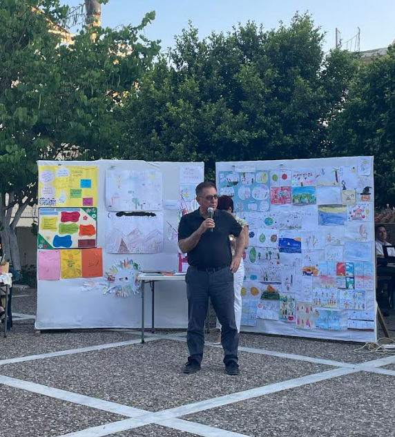 (Η Αντιδήμαρχος κ. Σκαλτσά διάβασε το μήνυμα του Διευθυντή της Α’ βάθμιας εκπαίδευσης κ. Καρατζά ο οποίος ευχαρίστησε για την πρόσκληση στην εκδήλωση στην οποία λόγω ανειλημμένων υποχρεώσεων δεν μπόρεσε να παραβρεθεί. Συνεχάρη για τις καλλιτεχνικές δράσεις, τονίζοντας πως «η καλλιτεχνική έκφραση σε όλες τις τις μορφές αποτελεί μία από τις σημαντικότερες πλευρές της ανθρώπινης ανάπτυξης».)
