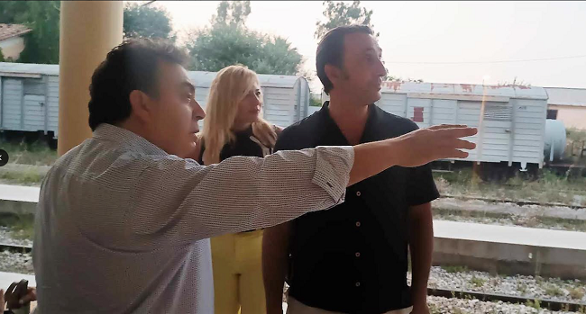 Τον δημιουργό και πρωταγωνιστή της ταινίας, καλωσόρισε ο Δήμαρχος Πύργου Παναγιώτης Αντωνακόπουλος, ο οποίος είχε την ευκαιρία να συνομιλήσει μαζί του και να του παρουσιάσει εν συντομία την ιστορία του σιδηρόδρομου στην περιοχή- της δεύτερης σιδηροδρομικής γραμμής στην Ελλάδα που εξυπηρετούσε την εξαγωγή της σταφίδας, κάνοντας παράλληλα μια σύντομη εξιστόρηση σημαντικών προσώπων και γεγονότων.