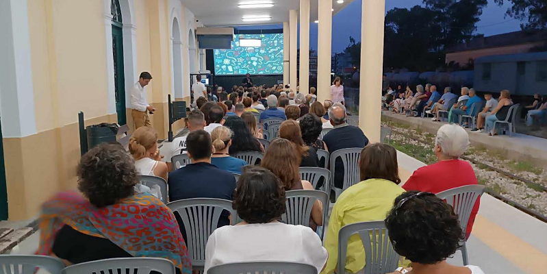 Τον δημιουργό και πρωταγωνιστή της ταινίας, καλωσόρισε ο Δήμαρχος Πύργου Παναγιώτης Αντωνακόπουλος, ο οποίος είχε την ευκαιρία να συνομιλήσει μαζί του και να του παρουσιάσει εν συντομία την ιστορία του σιδηρόδρομου στην περιοχή- της δεύτερης σιδηροδρομικής γραμμής στην Ελλάδα που εξυπηρετούσε την εξαγωγή της σταφίδας, κάνοντας παράλληλα μια σύντομη εξιστόρηση σημαντικών προσώπων και γεγονότων.