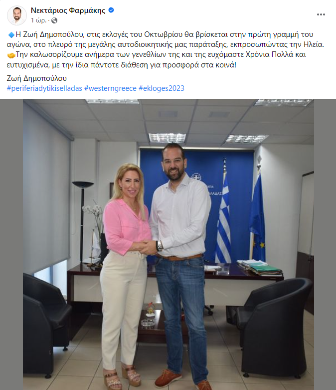 Υποψήφια περιφερειακή σύμβουλος η ειδική συνεργάτης του δημάρχου Ανδραβίδας-Κυλλήνης, Ζωή Δημοπούλου.
