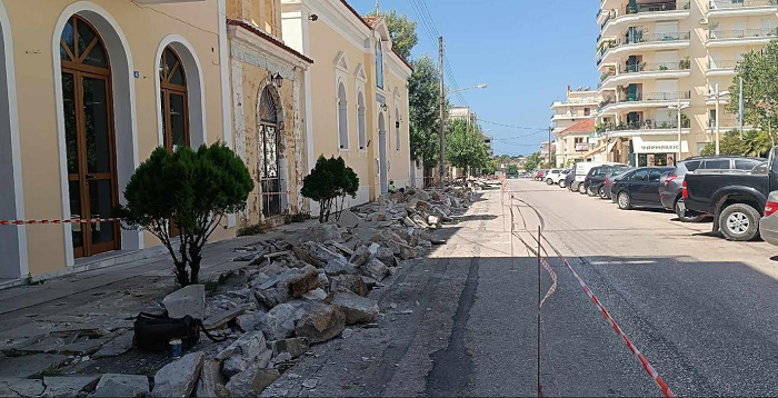 Ήδη τα μηχανήματα ξεκίνησαν το τμηματικό σπάσιμο των παλιών πεζοδρομίων από το ύψος του 2 ου Δημοτικού σχολείου μέχρι και τη συμβολή με την οδό Δραγατσανίου. Σύμφωνα με τη μελέτη, στα πεζοδρόμια – το πλάτος των οποίων θα παραμείνει το ίδιο – θα τοποθετηθούν κυβόλιθοι όπως και στον δρόμο, φωτιστικά led, μικρά καλαίσθητα καλαθάκια και ακακίες Κωνσταντινουπόλεως.