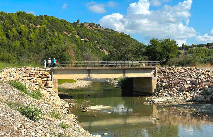 Με λιθορριπές για την αποκατάσταση των πτερυγότοιχων και τη θωράκιση του δρόμου, αντιμετωπίστηκε το πρόβλημα της γέφυρας που ενώνει τις Π.Ε. Ηλείας και Αχαΐας, στην Τ.Κ Βάλμης, την οποία επισκέφθηκε σήμερα, Πέμπτη 10 Αυγούστου 2023, ο Αντιπεριφερειάρχης Π.Ε. Ηλείας Βασίλης Γιαννόπουλος, όπου και ενημερώθηκε για την πορεία των εργασιών αποκατάστασης.