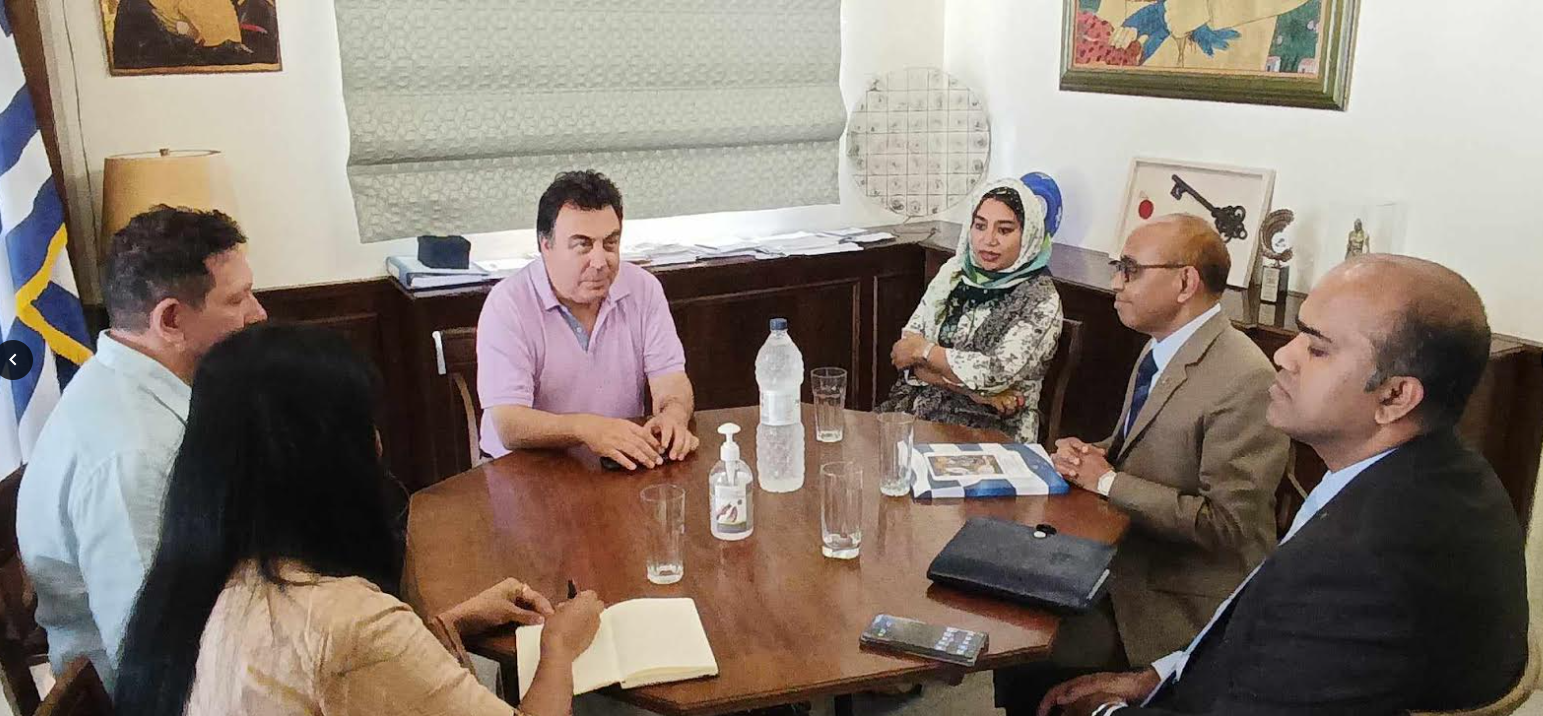 Ο κ. Ahmed, ο οποίος βρέθηκε στο Νομό συνολικά για δεύτερη φορά, ευχαρίστησε τον Δήμαρχο Πύργου για τη θερμή υποδοχή που του επιφύλαξε. Συνοδευόμενος από τους συμβούλους του, μίλησε για τις ανάγκες των εργατών γης από το Μπαγκλαντές στην ευρύτερη περιοχή, και υπογράμμισε ότι μέσα από μια ουσιαστική συνεργασία των δύο χωρών τα οικονομικά αποτελέσματα θα είναι ουσιαστικά. Η συζήτηση των δύο ανδρών που έγινε σε εγκάρδιο κλίμα, κι επεκτάθηκε και σε άλλα θέματα όπως στις σχέσεις της Ελλάδας με τη Λαϊκή Δημοκρατία του Μπαγκλαντές, χώρα που θαυμάζει ιδιαίτερα τον Αρχαίο Ελληνικό Πολιτισμό, στα αξιοθέατα και την ιστορία της πόλης του Πύργου κι άλλων τοπικών περιοχών.