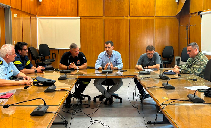 Έγινε σύντομη ενημέρωση των ενεργειών στις οποίες έχουν προβεί όλες οι εμπλεκόμενες Υπηρεσίες, επιβεβαιώνοντας ουσιαστικά την αυξημένη ετοιμότητα στην οποία βρίσκεται ήδη ο Μηχανισμός Πολιτικής Προστασίας, για την αντιμετώπιση πιθανού κινδύνου εκδήλωσης πυρκαγιάς. Ενδεικτικά, η Πυροσβεστική Υπηρεσία πραγματοποιεί αυξημένες περιπολίες, κάτι που ζητήθηκε να γίνει και από τις δυνάμεις της Ελληνικής Αστυνομίας, για όλες τις ημέρες κατά τις οποίες θα υπάρχει πρόβλεψη για υψηλό/πολύ υψηλό κίνδυνο πυρκαγιάς, ενώ στις εγκαταστάσεις της ΣΕΤΤΗΛ φιλοξενείται ήδη Πεζοπόρο Τμήμα του Π.Σ. για άμεση επέμβαση σε περίπτωση που χρειαστεί.