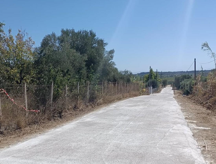 -Ο αγροτικός δρόμος που οδηγεί στο συσκευαστήριο βιολογικών προϊόντων «Λαμπρόπουλος» στην αγροτική περιοχή Μυρτιάς – Αγ. Ηλία.