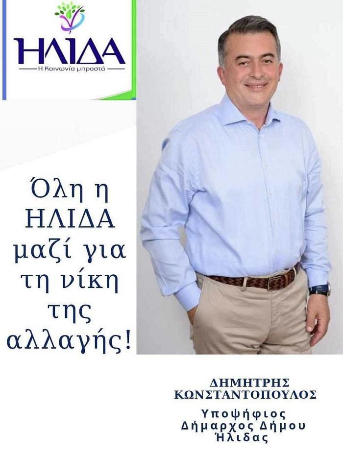 Η παράταξη ‘’ΗΛΙΔΑ- Η Κοινωνία μπροστά’’ και ο επικεφαλής και Υποψήφιος Δήμαρχος Ήλιδας Δημήτρης Κωνσταντόπουλος, τηρώντας πιστα τις αρχές για την πραγματική αλλαγή στο δήμο Ήλιδας με σεβασμό στο πολίτη, ΚΑΛΟΥΝ σε ΠΡΟΣΚΛΗΤΗΡΙΟ συμμετοχής κι συστράτευσης ΟΛΕΣ και ΟΛΟΥΣ τους συμπολίτες μας για να έχουν θέση και λόγο με τη συμμετοχή τους στο ψηφοδέλτιο νίκης και ΑΛΛΑΓΗΣ.