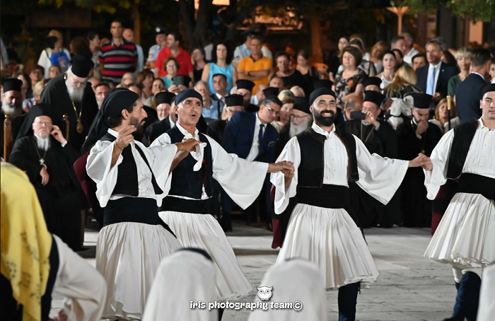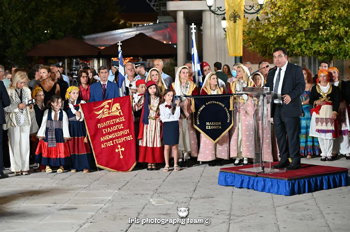Μια πανδαισία παράδοσης και ελληνισμού ήταν η εκδήλωση προς τιμήν της Α.Θ.Π. Οικουμενικού Πατριάρχη κ.κ. Βαρθολομαίου και της Πρόεδρου της Δημοκρατίας Κατερίνας Σακελλαροπούλου στην κεντρική πλατεία του Πύργου, το βράδυ του Σάββατου (2/9) αμέσως μετά την επίσημη τελετή της από κοινού ανακήρυξής τους ως Επίτιμους Δημότες Πύργου.