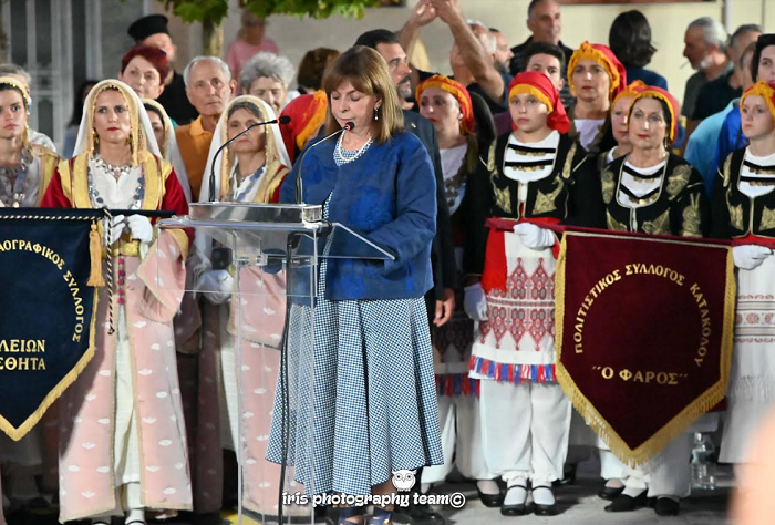 -Τις ανθοδέσμες στην Πρόεδρο της Δημοκρατίας Κατερίνα Σακελλαροπούλου έδωσε στην Πρόεδρο της Δημοκρατίας εκ μέρους του Διεθνούς Φεστιβάλ Τέχνης και Πολιτισμού Αρχαίας Φειάς Δήμου Πύργου το Λύκειο Ελληνίδων και εκ μέρους του Διεθνούς Φεστιβάλ Τέχνης και Πολιτισμού Δήμου Ανδραβίδας Κυλλήνης η μαθήτρια Γυμνασίου Ευγενία Σαραντοπούλου.