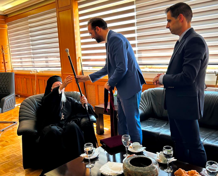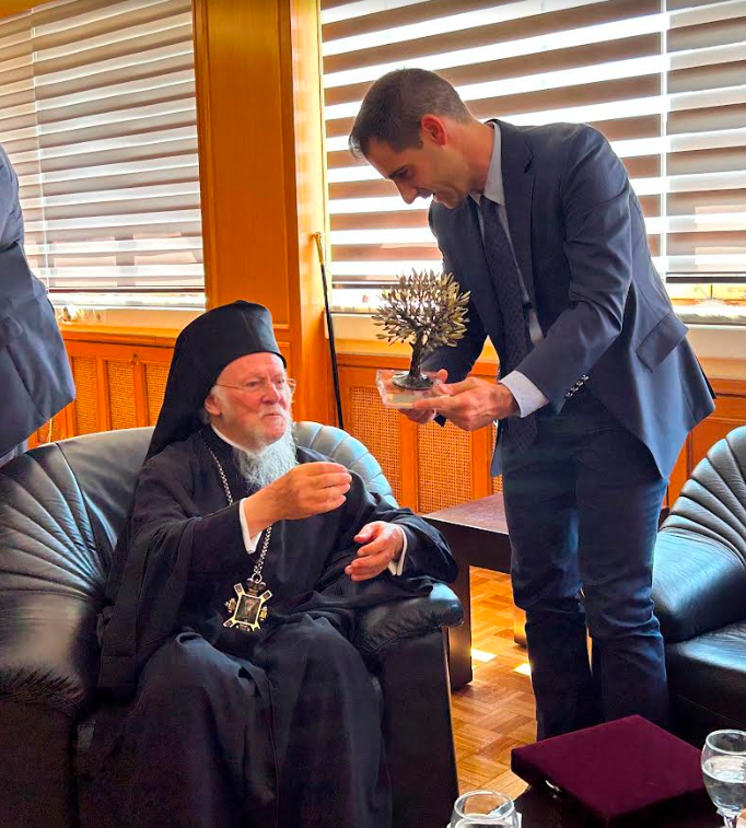 Μετά την Πανηγυρική Θεία Λειτουργία στον Μητροπολιτικό Ιερό Ναό Αγίου Νικολάου Πύργου, ο Παναγιότατος, συνοδευόμενος από τον Σεβασμιότατο Μητροπολίτη Ηλείας και Ωλένης κ.κ Αθανάσιο, πραγματοποίησε επίσημη επίσκεψη στο Γραφείο του κ.Γιαννόπουλου. Εκεί, είχε την ευκαιρία να συζητήσει, με τον κ.Φαρμάκη και με τον κ.Γιαννόπουλο για την Ηλεία και τη συνεργασία που μπορεί αναπτυχθεί με το Οικονομικό Πατριαρχείο στους τομείς, τόσο της εκπαίδευσης όσο και της προστασίας του περιβάλλοντος, για τα οποία η Περιφερειακή Αρχή έχει αναλάβει σχετικές πρωτοβουλίες και υλοποιεί έργα και δράσεις.