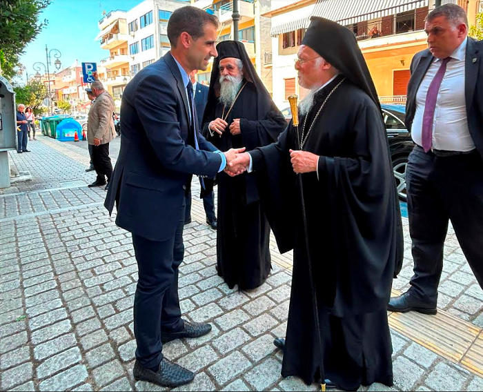 Το Διοικητήριο της Περιφερειακής Ενότητας Ηλείας επισκέφθηκε σήμερα, Κυριακή 3 Σεπτεμβρίου 2023, ο Οικουμενικός Πατριάρχης Βαρθολομαίος, όπου τον υποδέχθηκαν ο Περιφερειάρχης Δυτικής Ελλάδας Νεκτάριος Φαρμάκης και ο Αντιπεριφερειάρχης Π.Ε. Ηλείας Βασίλης Γιαννόπουλος, στο πλαίσιο της επίσημης επίσκεψής του στην Ηλεία και στους Δήμους Πύργου και Ανδραβίδας – Κυλλήνης, όπου αναγορεύτηκε Επίτιμος Δημότης.