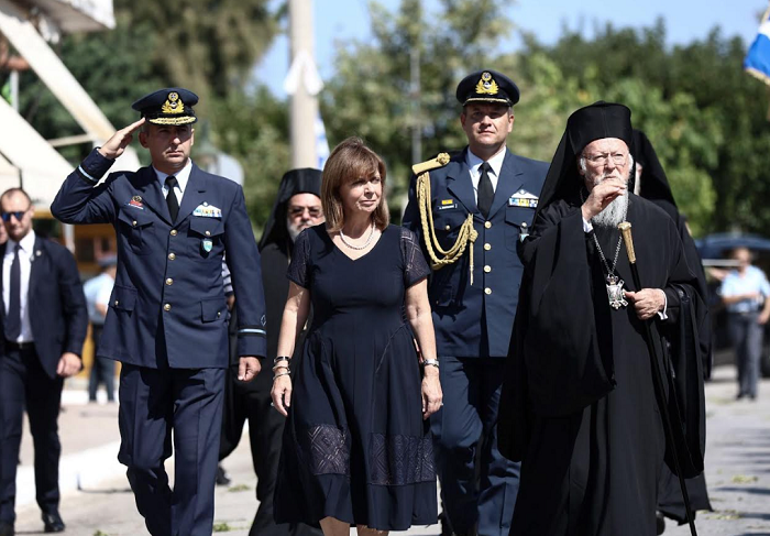 Μιλώντας για τον Οικουμενικό Πατριάρχη Βαρθολομαίο, η Κατερίνα Σακελλαροπούλου σημείωσε, απευθυνόμενη προς τον δήμαρχο, ότι «είναι μεγάλη τιμή για μένα να με συμπεριλάβετε στους δημότες σας και μάλιστα από κοινού με τον Οικουμενικό Πατριάρχη Βαρθολομαίο, μια λαμπρή προσωπικότητα που έχει κερδίσει τον σεβασμό όχι μόνο των συμπατριωτών μας, αλλά ολόκληρου του κόσμου».
