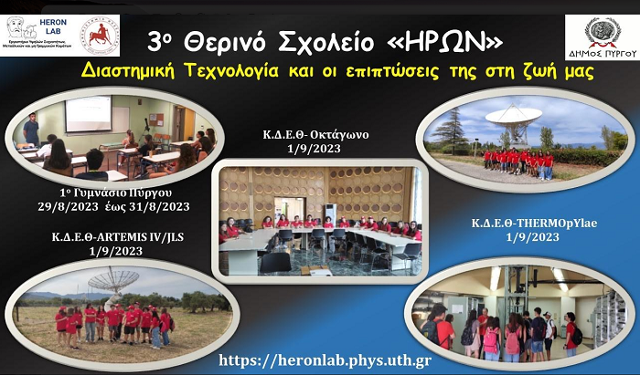 Το Θερινό σχολείο που πραγματοποιήθηκε το χρονικό διάστημα από 29 Αυγούστου έως 1 Σεπτεμβρίου 2023 στον φιλόξενο χώρο του 1 ου Γυμνασίου Πύργου συνδιοργανώνεται από το Ερευνητικό Eργαστήριο Υψηλών Συχνοτήτων, Μεταϋλικών και μη Γραμμικών Κυμάτων (HERON LAB) του Τμήματος Φυσικής του Πανεπιστημίου Θεσσαλίας και τον Δήμο Πύργου.