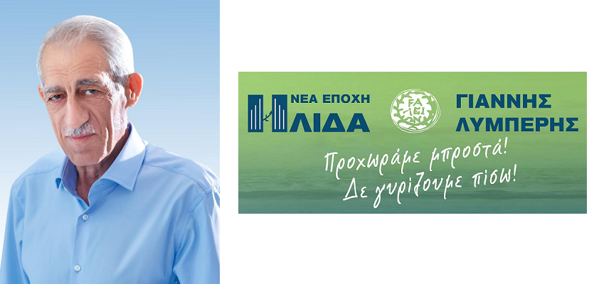 Ο υποψήφιος δήμαρχος Ηλίδας, Γιάννης Λυμπέρης, προσκαλεί όλους τους ψηφοφόρους στα εγκαίνια του εκλογικού του κέντρου, την Κυριακή 10 Σεπτεμβρίου και ώρα 8:00 μ.μ. στην πλατεία Αγ. Αθανασίου.