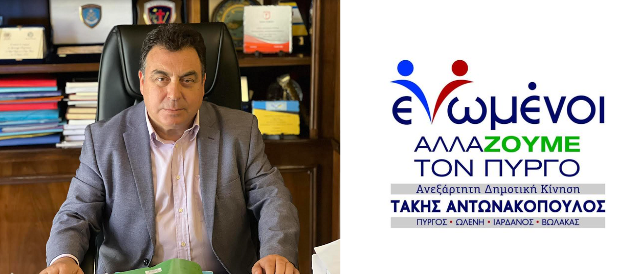 Ο υποψήφιος δήμαρχος Πύργου, Παναγιώτης Αντωακόπουλος προσκαλεί όλους τους ψηφοφόρους στα εγκαίνια του εκλογικού του κέντρου, την Κυριακή 10 Σεπτεμβρίου και ώρα 8:00 μ.μ. στην Πατρών 12-14 [Στοά Φίτσιου].