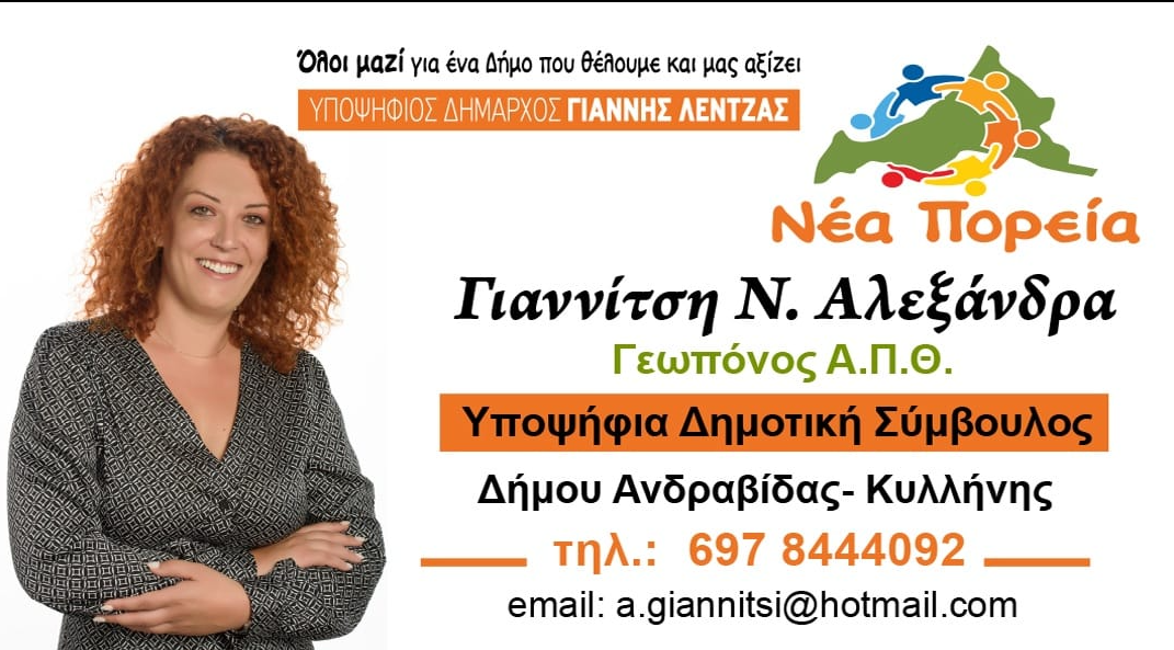 Με αρκετές αρμοδιότητες στη πλάτη της, η Αντιδήμαρχος του Δήμου Ανδραβίδας-Κυλλήνης Αλεξάνδρα Γιαννίτση απέδειξε ότι είναι για… τα δύσκολα. Άνθρωπος χαμηλών τόνων η κ. Γιαννίτση στάθηκε επάξια δίπλα στον Δήμαρχο Γιάννη Λέντζα, και καθόλου τυχαίο ότι είναι και η αναπληρωτής Δήμαρχος.