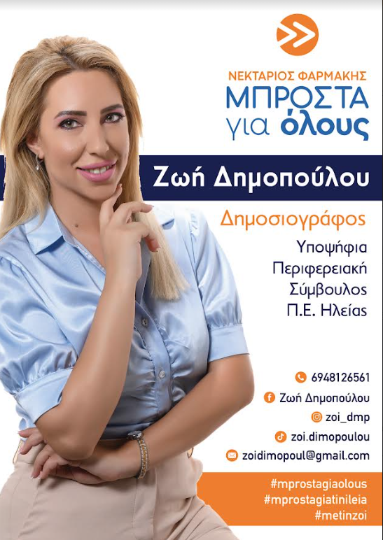 Η Ζωή Δημοπούλου, το ευγενικό και χαμογελαστό κορίτσι της Βάρδας, για πρώτη φορά διεκδικεί την ψήφο των πολιτών της Ηλείας, στις Περιφερειακές εκλογές της 8ης Οκτωβρίου, με την παράταξη του Νεκτάριου Φαρμάκη.