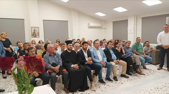 Τέλος, ο πρόεδρος του Πολιτιστικού Συλλόγου Αγίου Γεωργίου Παναγιώτης Ηλιόπουλος παρέδωσε μια τιμητική πλακέτα στον Στάθη με πολλές ευχαριστίες για το νέο απόκτημα του συλλόγου που στεγάζεται σε ένα κτίριο “κόσμημα” για την περιοχή.