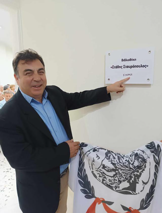 Με 1500 τίτλους βιβλίων και μια επιγραφή που φέρει το όνομά του και την χαρακτηριστική του υπογραφή, εγκαινιάστηκε η βιβλιοθήκη “Στάθης Σταυρόπουλος” στο κοινοτικό κατάστημα της Δ.Κ. Αγίου Γεωργίου το βράδυ της Παρασκευής. Η γενέτειρα του διακεκριμένου σκιτσογράφου-συγγραφέα απέκτησε ένα πνευματικό “διαμάντι” για τις νυν και τις επόμενες γενιές μετά τη γενναιόδωρη χειρονομία του Στάθη να δωρίσει ένα μεγάλο μέρος βιβλίων από την προσωπική του συλλογή στον Πολιτιστικό Σύλλογο Αγίου Γεωργίου, ενώ σύντομα θα ακολουθήσουν και άλλα βιβλία.