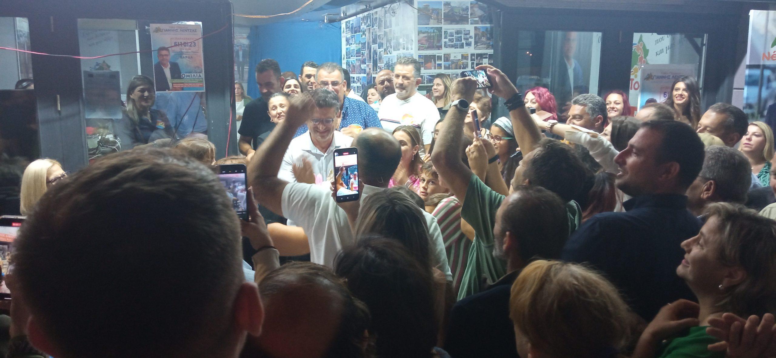 Περίπου στις 10.30′ το βράδυ ο κ. Λέντζας εμφανίστηκε στη Βάρδα όπου ο κόσμος, που είχε από νωρίς κατακλύσει το εκλογικό του κέντρο, τον αποθέωσε. Μηχανές να μαρσάρουν, πυροτεχνήματα που έκαναν τη νύχτα μέρα και αγκαλιές – πολλές αγκαλιές και φιλιά για τον “Δήμαρχο της καρδιάς τους”.