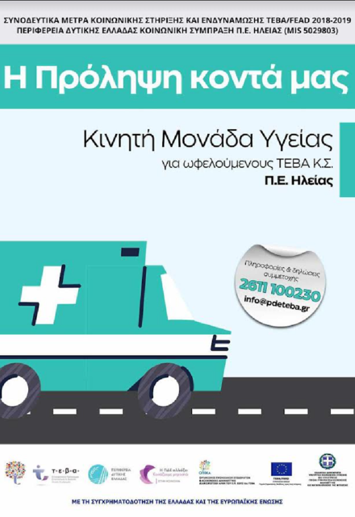 Ο Δήμος Ανδραβίδας-Κυλλήνης συμμετέχει στην διεξαγωγή της δράσης προληπτικών υπηρεσιών υγείας με τίτλο “Η Πρόληψη κοντά μας” για ωφελούμενους ΤΕΒΑ Κ.Σ. Π.Ε. Ηλείας. Συγκεκριμένα, η δράση θα γίνει: