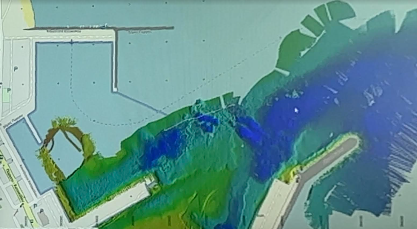 Επίσης πραγματοποιήθηκε και νέα βυθομετρική αποτύπωση ακριβείας και παράλληλη χαρτογράφηση του βυθού του λιμένα ώστε να αποκαλυφθούν τα ακριβή σημεία που αφενός απαιτείται βυθοκόρηση εντός του λιμένα για να αποτυπωθεί το μέγεθος της καθίζησης του προσήνεμου μόλου πρόσδεσης Κρουαζιερόπλοιων ώστε να καταστεί δυνατόν στους μελετητές να προσδιορίσουν την μεθοδολογία κατασκευής (στην περίπτωση επέκτασης), κι αφετέρου τον ακριβή προσδιορισμό του κόστους επισκευής (εκσκαφές, λιθορριπές, πάσσαλοι κλπ.).