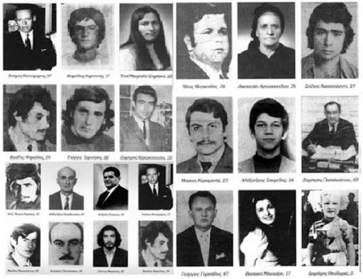 Κολινιάτης Ευστάθιος, 47 ετών, από τον Πειραιά, κάτοικος Νικοπόλεως 4, Καματερό Αττικής. Χτυπήθηκε στις 18.11.1973 από αστυνομικούς με συμπαγείς ράβδους, και υπέστη κρανιοεγκεφαλικές κακώσεις, συνεπεία των οποίων πέθανε στις 21.11.1973.