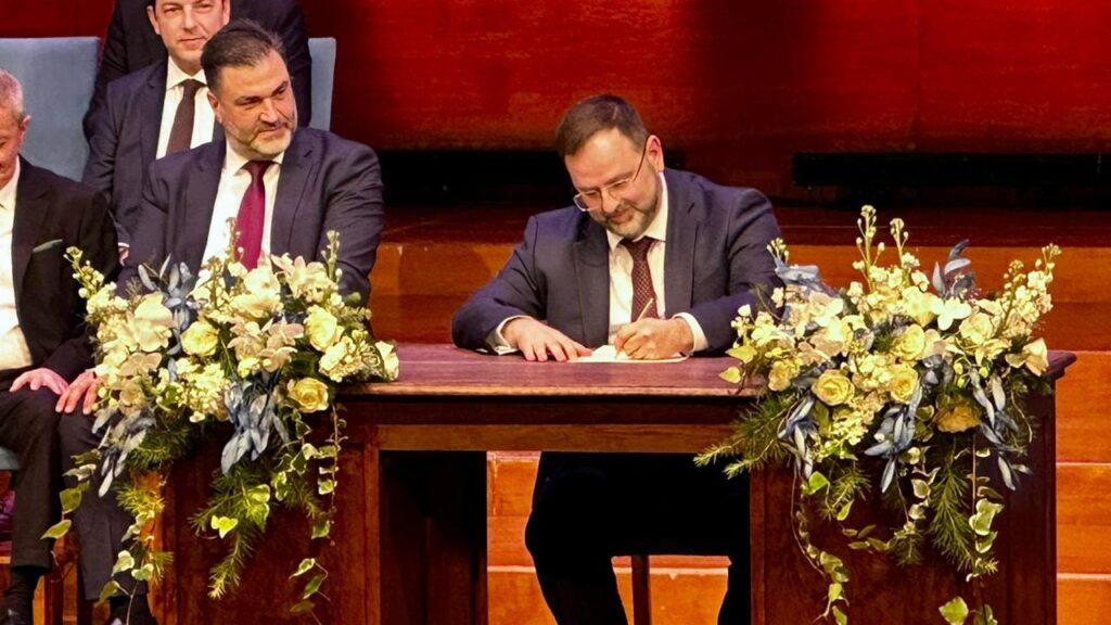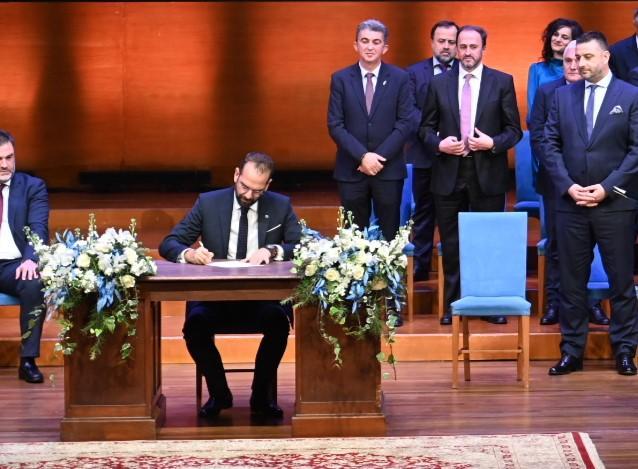 Η τελετή πραγματοποιήθηκε το απόγευμα της Δευτέρας στο Συνεδριακό και Πολιτιστικό Κέντρο του Πανεπιστημίου Πατρών, παρουσία της Υπουργού Κοινωνικής Συνοχής και Οικογένειας, Σοφίας Ζαχαράκη, του Περιφερειάρχη Κεντρικής Μακεδονίας και προέδρου της ΕΝΠΕ, Απόστολου Τζιτζικώστα, βουλευτών, τοπικών αρχών και φορέων. Την ορκωμοσία τέλεσε ο Σεβασμιότατος Μητροπολίτης Ναυπάκτου & Αγίου Βλασίου, Ιερόθεος, συμπαραστατούμενος από τους Μητροπολίτες, Καλαβρύτων και Αιγιαλείας Ιερώνυμο, Ηλείας Αθανάσιο Β΄, τον Επίσκοπο Κερνίτση, Χρύσανθο και τον εκπρόσωπο του Σεβασμιότατου Μητροπολίτη Αιτωλίας και Ακαρνανίας, πρωτοσύγκελου π. Θεόκλητου.